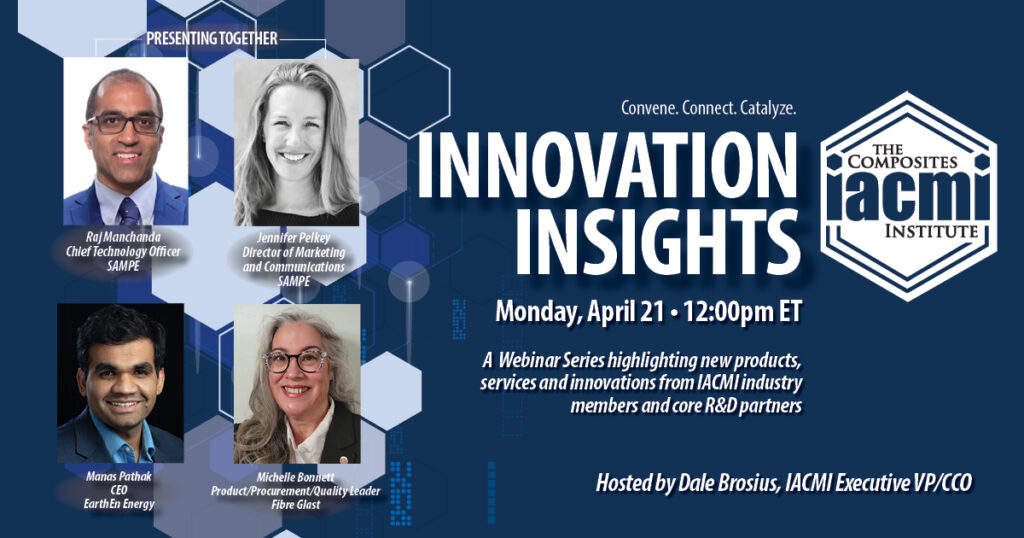 Our monthly webinar series “Innovation Insights” continued Monday, April 21, as IACMI EVP/CCO Dale Brosius moderated discussions on recent technology advancements from IACMI members.