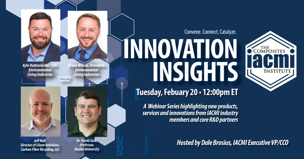 Our monthly webinar series “Innovation Insights” continued Tuesday, February 20, as IACMI EVP/CCO Dale Brosius, moderated discussions on recent technology advancements.