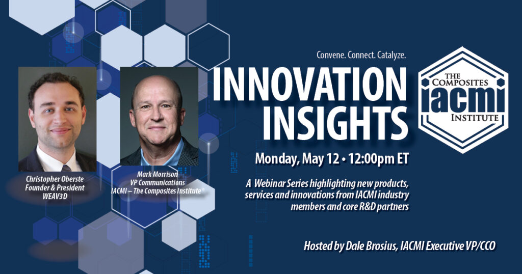 Our monthly webinar series “Innovation Insights” continued Monday, May 12, as IACMI EVP/CCO Dale Brosius moderated discussions on recent technology advancements from IACMI members.